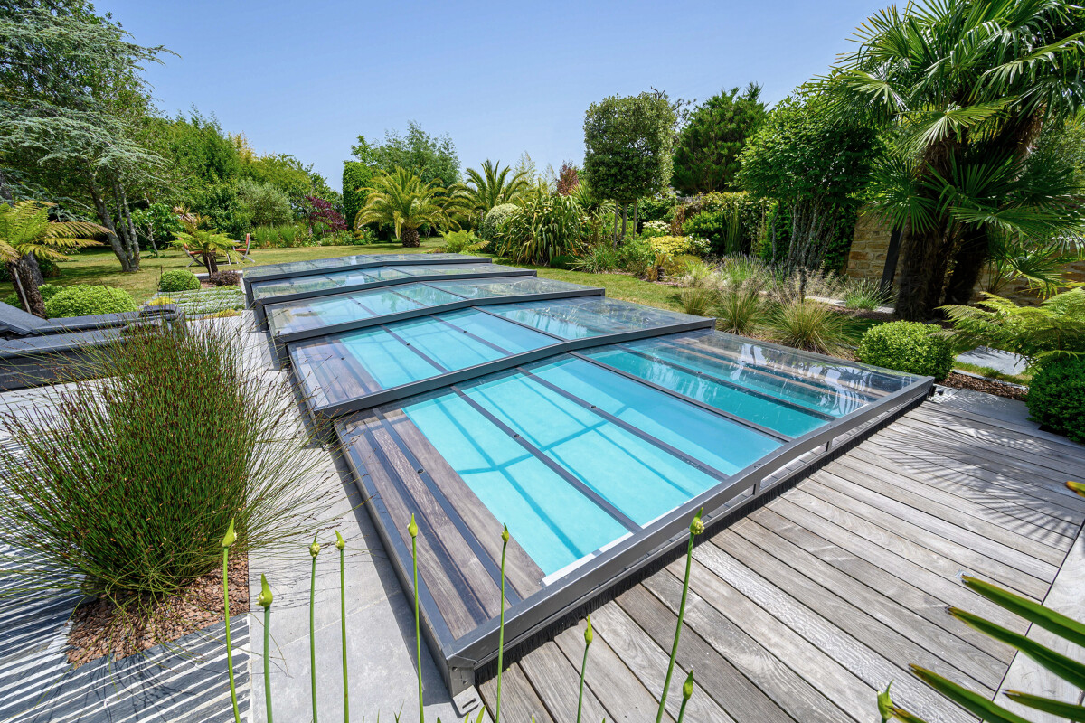 Ces abris de piscines allient les avantages d’un abri bas dont la caractéristique essentielle est de se faire discret et le confort dignes d’abris plus grands ou plus hauts.