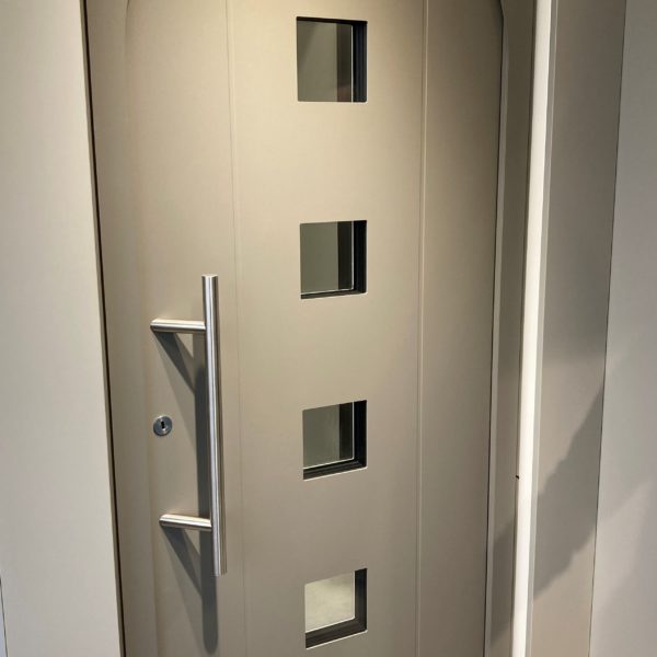 Portes d’entrées modernes ou classique, colorées ou sobres: l’aluminium noble utilisé côté extérieur leur confèrent une excellente résistance aux intempéries, à la corrosion et les protègent des salissures, tout en ne nécessitant que peu d’entretien. Le tout en conservant le PVC intérieur assurant une meilleure isolation thermique et phonique.
